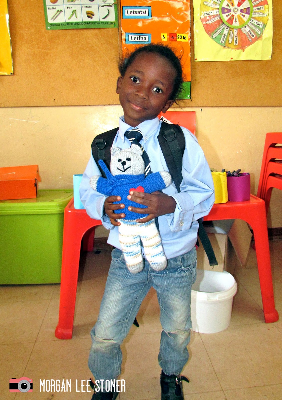 I contacted Amy from Mother Bear and told her about my learners and she quickly added me to the distribution list. Within weeks I received 253 bears (enough for the creche, and four grades at Dipere). The bears are made by volunteers and shipping costs are covered by donations so the children don’t pay anything for the beautiful bears. The only thing Amy asks is that a photo is taken of every child with their bear so that the volunteers who make the bears can see the child that benefits from all their hard work.