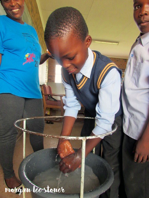 My org opened a new branch on the other side of town to reach even more kids. I haven’t spent much time at that branch since it opened last year but I decided to work with the staff to run a handwashing lesson. We used glitter to represent germs and showed learners that only washing with water AND soap can remove germs. We also taught them how to avoid spreading germs by coughing into the elbow, sneezing into a tissue, etc.