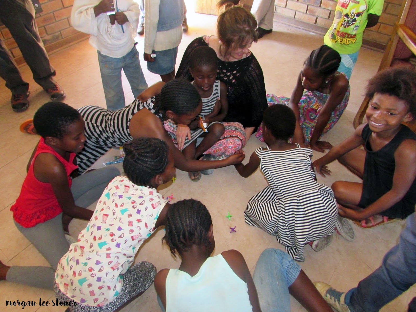 The organization that funds/runs/started (?) the Mmametlhake Family Care Centre came to visit at the end of March. Hand in Hand in Africa is based in America and they come to SA every year to check-up on things. They brought toothbrushes and toothpaste to teach the kids about proper tooth-brushing. They also brought jacks to play with the kiddos. The kids play a similar game here in SA so there was some great cultural exchange 🙂