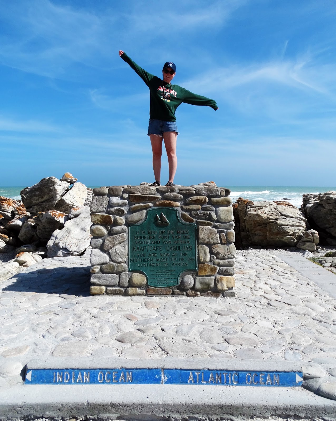 After the cage dive, we drove immediately to Cape Agulhas, the southernmost tip of Africa and the dividing line between the Atlantic and Indian oceans. The area was under construction so we couldn’t go to the lighthouse, but that also meant there weren’t many tourists. Although the southern-most tip of Africa was simply a stone block with a plaque, I could not get over the fact that for a few minutes, I was the southernmost human being on the entire continent of Africa. Africa has a population of 1.216 BILLION people and for a short time, I was the most southern. I would visit Cape Agulhas for that mind f*ck alone. If the shore weren’t so rocky, we probably would have put our feet in the water just to say we swam where the Atlantic and Indian oceans mix, how cool is that?