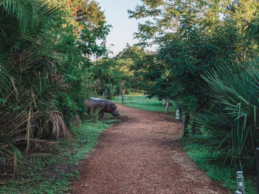 The lodge boasts an infinity pool, electric game drive vehicles and boat, and even a resident subadult hippo! (Apparently calling him ‘subadult’ isn’t mean, it just means he’s young haha). Hippos are actually nocturnal and graze at night, but the staff at Ila told me that this hippo grazes during the day because the other hippo pick on him 🙁
